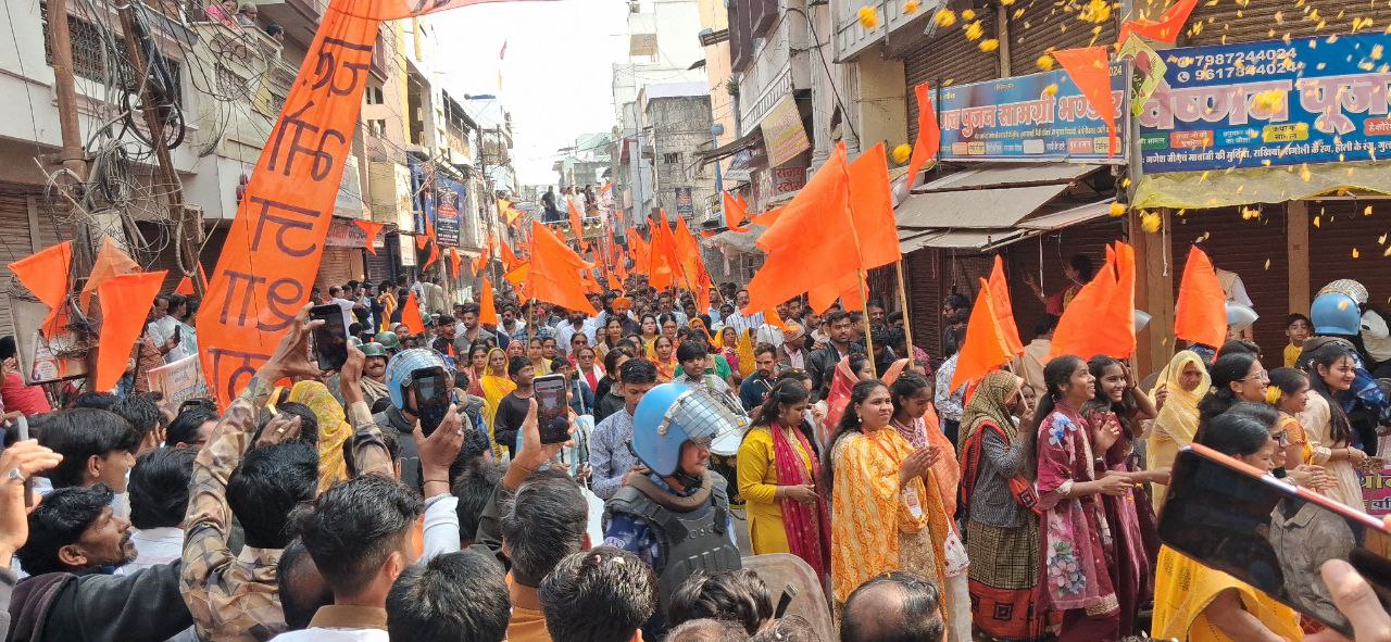 शोभायात्रा के दौरान माहौल धार्मिक उत्साह और जयकारों से गूंज उठा। यात्रा का उद्देश्य भोजशाला से जुड़े मुद्दों को लेकर जनजागरूकता फैलाना बताया गया।
