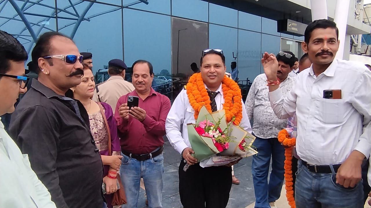 एयरपोर्ट में विमान उतारने वाले राघव का गर्मजोशी से हुआ स्वागत